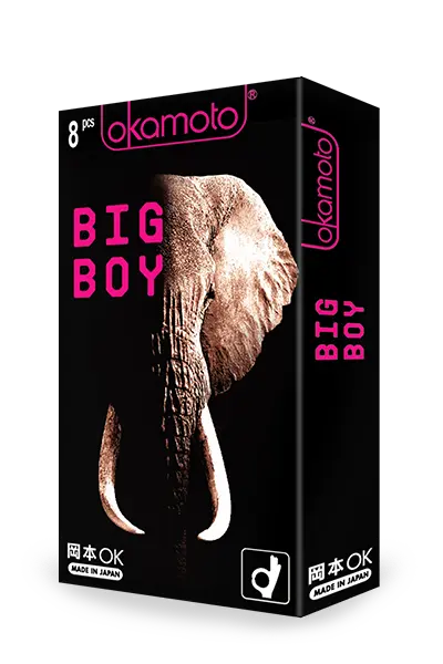 Okamoto Big Boy 8s condoms are made 5mm larger in diameter to allow for a more comfortable fit/experience for those with bigger packages and hung like a horse.